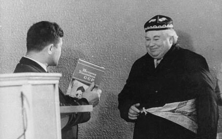 60-річний ювілей Герасимова М.М. (зправа - Герасимов М.М.). 1967 р. м. Самарканд