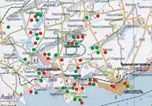 Розташування Скіфських пам'ятників у районі міст Орджонікідзе і Нікополя: