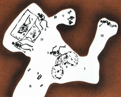 І - центральна гробниця; ІІ - грабіжницький лаз; ІІІ - бокова гробниця;