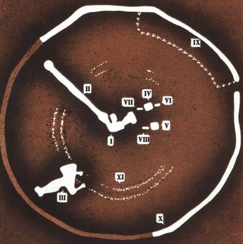 Х - рів; ХІ - кам'яний кромлех навколо центральної гробниці