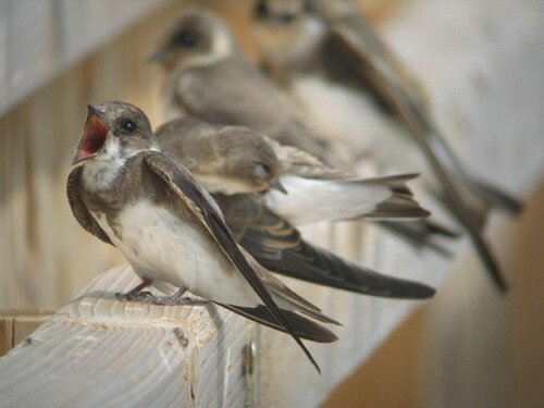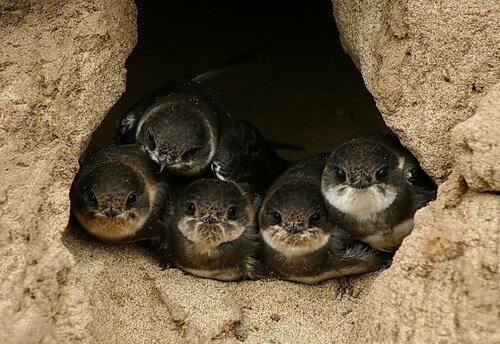 Настоящие чудеса гнездовой архитектуры создает ласточка береговая, а ее жилье совсем не похоже на жилье других ласточек. Кто бы мог подумать, что эти маленькие существа способны выкапывать на обрывистом берегу норы, которые нередко достигают 1,5 м длины. Они заканчиваются расширениями для гнезда, которые птицы выстелают травинками и перьями. За лето чаще всего бывает одна кладка из 4-6 белых яиц. Через 2 недели вылупляются птенцы, которые через 3 недели уже могут летать. Ласточки береговые не употребляют растительной еды – они кормятся большим количеством мелких насекомых, которых ловят, летая в воздухе. В нашей местности ласточки береговые начинают улетать на зимовку приблизительно в первых числах октября – по окончании последнего „бабьего” лета. Этот вид ласточек очень любит тепло, поэтому его представители проводят зиму в Африке, на берегах Нила.