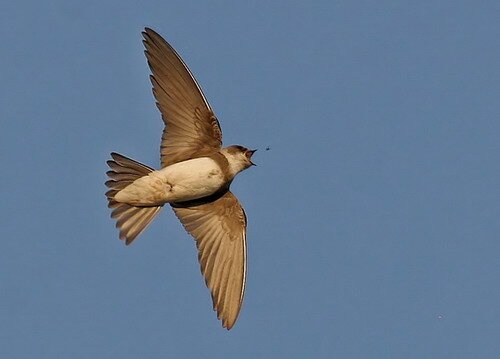 Ласточка береговая (Riparia riparia) Ласточка береговая или щурик, щурка – мельчайшая из всех наших ласточек. От хорошо известных всем ласточки городской (Delichon urbica) и ласточки сельской (Hirundo rustica) она отличается расцветкой, серовато-бурым верхом и грязновато-белым низом с характерной (только у этого вида) темной поперечной полосой на груди. Хвост у ласточки береговой короткий, выемка на нем небольшая. В отличие от других видов, она поселяется колониями на берегах рек, склонах оврагов и балок, старых песчаных или глинистых карьерах, где может быть до нескольких тысяч норок. С пронзительным криком, который напоминает крик городской ласточки, эти птицы парят над водой или над обрывами.