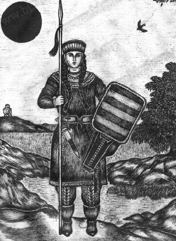 При дослідженні кургану № 13 (Капулівка I, Нікопольський район) археологами було виявлено поховання молодої скіфської жінки або дівчини. Кисть похованої стискала ручку бронзового люстерка, а біля неї вчені виявили чимало типово жіночих прикрас (золоті сережки, намисто із золотих намистин, що чергуються з підвісками у вигляді парних золотих кілець і т.д.), а також предметів туалету. Але в похоронній камері знаходилися й інші предмети - абсолютно не властиві для «забитих і безправних» скіф’янок. Безпосередньо за черепом знаходився сагайдачний набір, що складався з 52 бронзових наконечників стріл, повернутих вістрями в південну сторону. Стріли лежали компактною купкою в декілька рядів. Праворуч від скелета були знайдені наконечники списа, що лежали поряд, і дротики, а також підток списа. Дротик мав жаловидне перо і вузьку втулку, перехідну в масивний стрижень. Довжина наконечника складала 40 см, довжина пера - 6,5 см, діаметр втулки - 2,5 см. Поряд з ним лежав наконечник списа завдовжки 44 см (довжина пера - 32 см, діаметр втулки - 3 см). Залізний підток циліндрової форми мав довжину 17 см, діаметр - 2,5 см. Варто відзначити, що подібні наконечники списів і дротиків характерні для поховань скіфських воїнів IV ст. до н.е., виявлених як в курганній групі Капулівка І, так і в інших курганах на території Нікопольського району. ![]()
