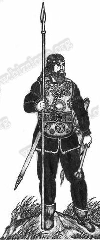 По відношенню до них усі інші племена вважалися залежними, "підвладними" і "рабами". На чолі країни стояли царі (спочатку - три, потім - один) і родові старійшини. Своє походження скіфські царі вели від Геракла, котрого скіфи шанували як "справжнього бога", тому і царська влада вважалася божественною і була спадковою. Царі виконували судові функції, були головними жерцями і верховними головнокомандувачами. ![]()