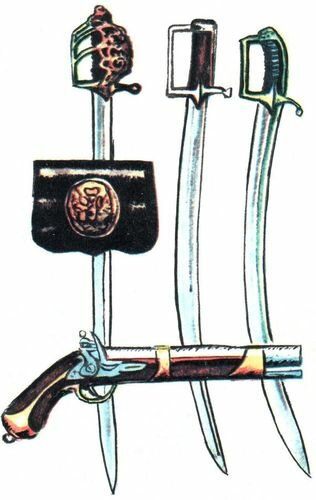шабля легкоконних полків, патронна сумка і пістолет. Кінець XVIII ст.