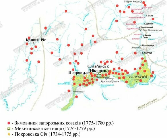 Місця розташування зимовників запорозьких козаків