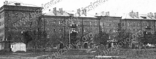 Но грянула война. В первые месяцы оккупации города немцы использовали десятый дом для содержания в нем пленных красноармейцев. Их загнали в новенькие квартиры, блиставшие свежей покраской и кафелем. Ни канализация, ни водопровод не работали. Внизу сторожили немецкие автоматчики. Горожане, женщины и подростки, установили с пленными контакт: на связанных бинтах из окон опускались котелки, консервные банки, которые наполнялись едой, водой, куревом и поднимались вверх, на этажи. Некоторые женщины ухитрялись забирать пленных, называя их своими мужьями, отцами, братьями...После освобождения Никополя от оккупантов 8 февраля 1944 года, вместе с восстановлением завода быстрыми темпами строился Соцгород и его главная улица. План-проект застройки разрабатывала Ленинградская архитектурно-планировочная мастерская ГИПРОМЕЗа с 1946 года. Первые жилые кварталы, 2-я поликлиника и 2-я гор-больница строились пленными немцами. Нужно отдать им должное: строили они добротно и прочно (см. фото 12, 13).