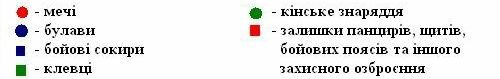 1 - панцирні пластини; 2 - наконечник скіфського меча